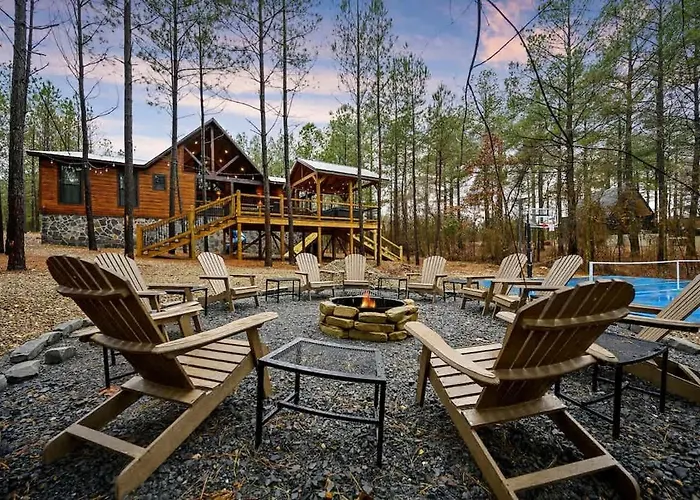 Massive Hochatown Lodge W Spa, Basketball & More is located within a 10-minute drive of Body Harmony Day Spa and invites guests to enjoy a sunny patio. The 6-bedroom villa offers guests a relaxing experience with a Jacuzzi.